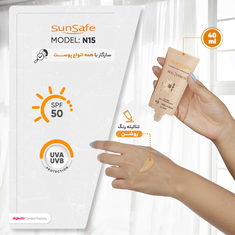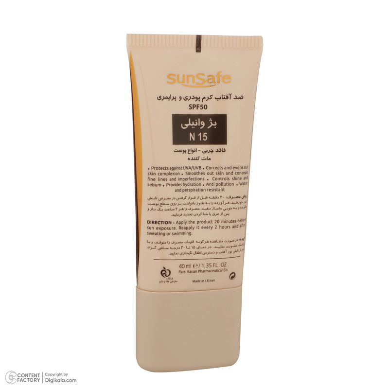 راهنمای استفاده : پانزده دقیقه قبل از قرار گرفتن در معرض نور خورشید از کرم ضد آفتاب رنگی کرم پودری و پرایمری مکیسان با اس پی اف 50 سان سیف استفاده کنید. در طول روز، هر دو ساعت یک بار کرم را تجدید کنید. در صورت تعریق و شنا، مجدد از این کرم استفاده کنید.