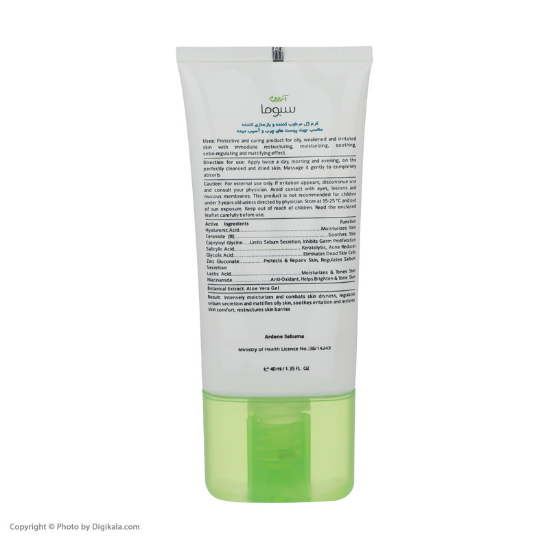 کرم ژل مرطوب کننده و بازسازی کننده سبوما، با فرم ژل با مرطوبسازی و آبرسانی به پوستهای چرب، حساس و کم آب و تحت درمان، پوست را التیام داده و خشکی ناشی از درمانهای پوستی (به خصوص هم زمان و پس از مصرف راکوتان) را برطرف و ترشح چربی پوست را کنترل کرده و ظاهری مات را ایجاد میکند. در نتیجه مصرف این محصول خشکیهای اکتسابی پوست برطرف شده، پوست صورت مات و ترشح چربی غدد سباسه تنظیم میگردد و لایه هیدرولیپیدیک پوست ترمیم شده و از آن محافظت میشود.