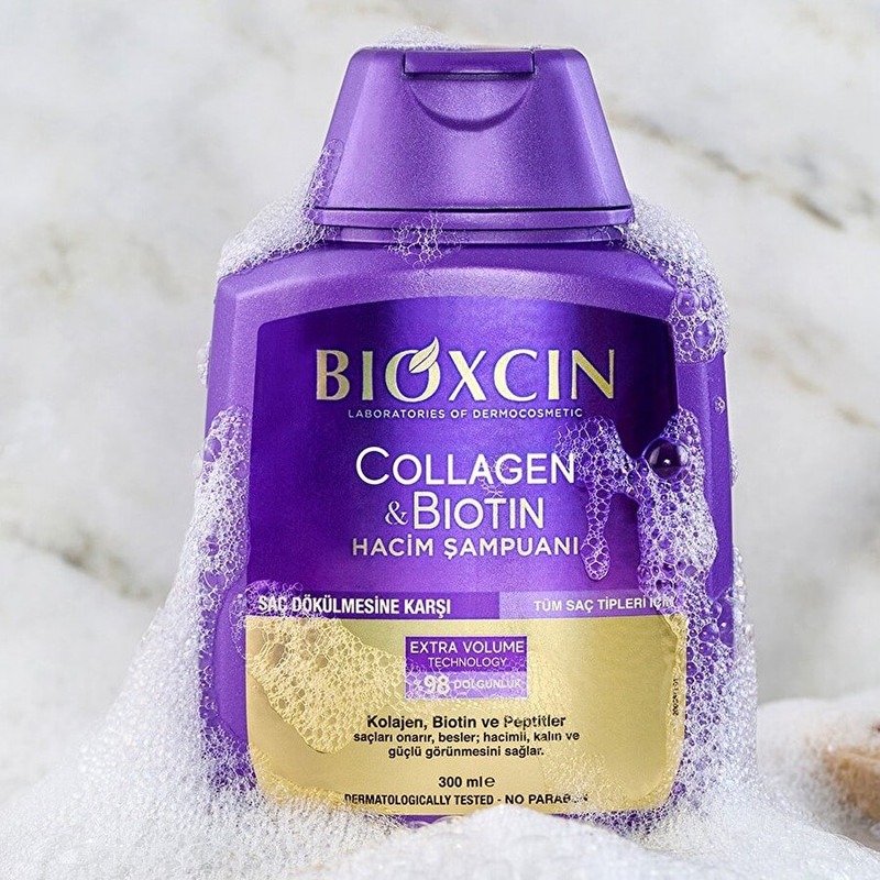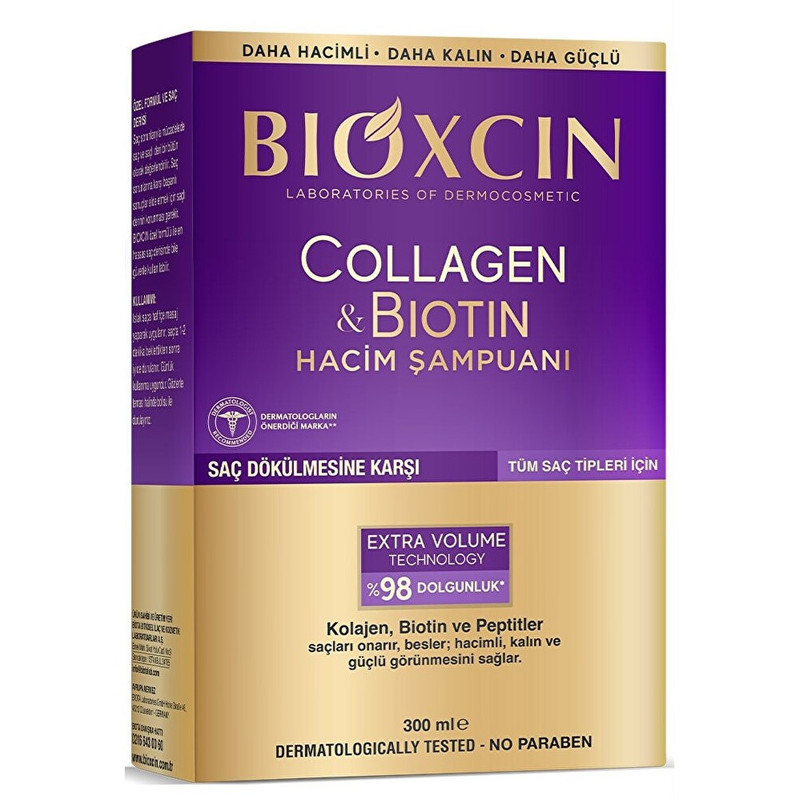 شامپو بیوکسین ضد ریزش حاوی بیوتین و کلاژن حجم 300 میل محصولی از شرکت بیوکسین BIOXCIN ترکیه است .